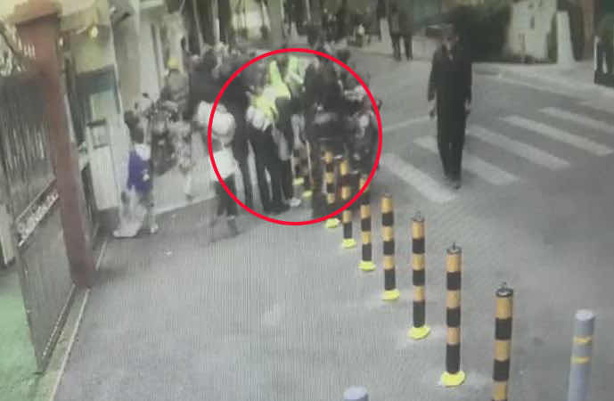 1月7日下午,上海市公安局闵行分局交警支队机动大队民警严潇在某幼儿园门口开展护校工作时,发现身边突然嘈杂,听闻一名家长向另一名家长喊叫“你人(从电瓶车上)下来,让她吐呀”。